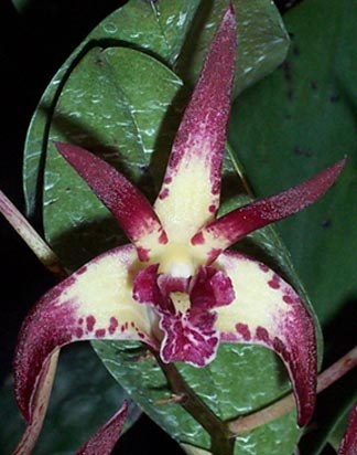We are making it difficult for all you Aussie Native growers who have got onto the Dockrillia “Train”. This primary hybrid should certainly be seriously considered to be added to the “Train”. The lovely mid Granny Smith green of bowmannii, all be it with one or two blooms, but almost as flat as a pancake, combined with the ‘Sooty’ maroon colour of “Pam”, the result , anybody’s guess, but will be, we think an exciting step in the right direction colourwise.