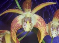 Mum – Ira Butler ‘GOLD’ winner 2006. Grey/blue beauties relatively flat with a mulberry colouring at the junction of the segments, & a totally frilly recurving labellum, outstanding combination on a 30mm bloom. Whilst Dad around the 60mm plus in width, bone/white in colour, the lip that tapers almost to nothing in its recurving habit & that dark mulberry marking at segmental junction. Our expectations are very high with this combination.