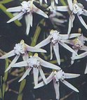 Virginia with linguiforme & teretifolium as Mum & Dad, carrying lots & lots of almost pure white 30 – 40mm recurving segmental beauties. Then there’s ‘Sooty’ in fuliginosa with maroon/purple colouration & slightly closed segments. We know what results we have had with Tweetie, Tweetas & Australian Ginger; they have been ‘Gob Smackers’. None of those have had the white or a recurving segmental flower as a co parent, Could be a whole new world of Dockrillia breeding lots of flowers with different result in the colour combo’ stakes, Throw in colchocine.