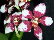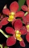 ‘Delvene’ a better than average solid lipstick pink ceciliae, good flower count and spike. Dad, as per X2447 flowers flat as the proverbial pancake & the velvety red. Should produce a very pleasing ‘novelty’ Sarcochilus, colour, your guess would
