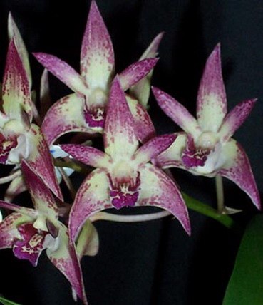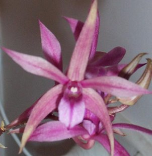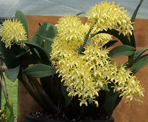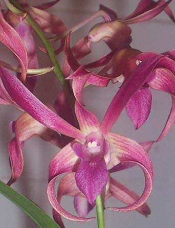 This is a Warringah with a definitive difference, it will be squatter. We have gone for ‘Pine Mountain as Mum, it is one of the first flowering speciosums, long arching spike cream /yellow blooms & lots of them. Importantly Mum has a short racus, the gap between base of flower and raceme. ‘Wilko’s Best’ would have to be one of the best bigibbum’s going around, bewdiful shape, great solid deep deep pink colour, great presentation. These are growing like crazy.